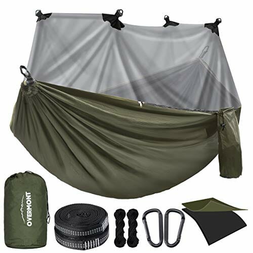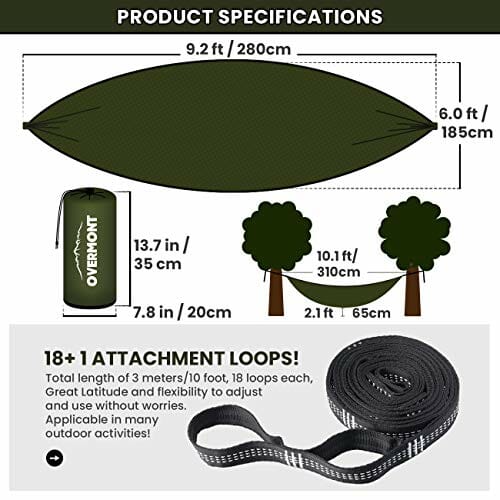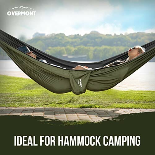Overmont Dwuwarstwowy hamak z moskitierą, certyfikat TÜV, nośność 400 kg, do użytku na zewnątrz, oddychający hamak na kemping, podróż, trekking, do ogrodu, 280 x 185 cm, z nylonowego spadochronu