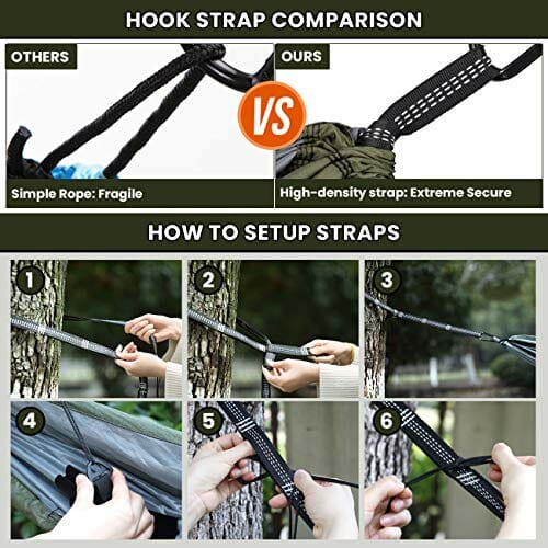 - 【Leicht und Kompakt】 Alles in einer kleinen Tasche verpackt, die An der Hängematte befestigt ist und an Ihrem Rucksack aufgehängt werden kann