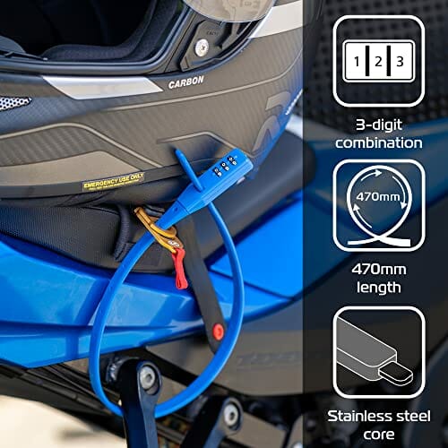 • Resetowalny 3-cyfrowy zamek szyfrowy, długość 470 mm i waży tylko 73 g.