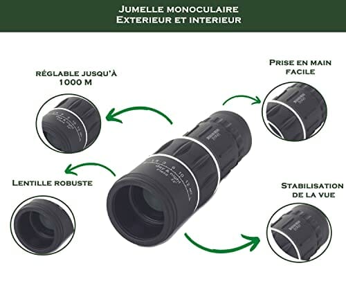 PARENCE – Lornetka monokularowa 16 X 52 z funkcją nocną – Futerał i narzędzie do czyszczenia – Soczewka pancerna – Idealny kemping, wędkarstwo, obserw