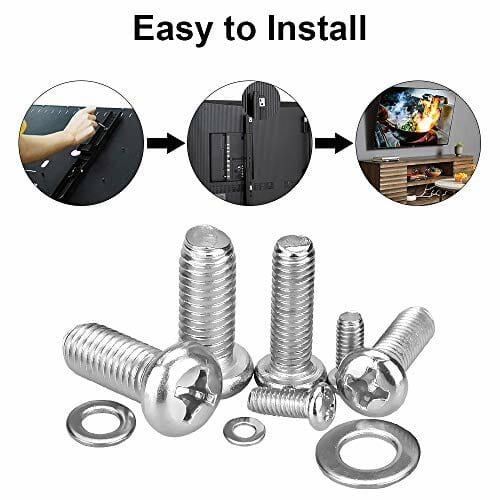 • W zestawie z podkładkami: Założone podkładki idealnie pasują do śruby. Pozwala nie tylko dostosować się do nierównego tyłu telewizora, ale także mocno przymocować telewizor lub monitor do uchwytu. Nadaje się do telewizorów o przekątnej poniżej 80 cali.