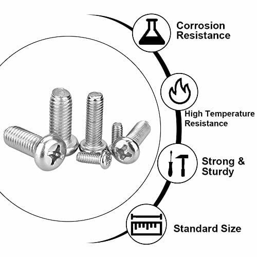 • Materiał ze stali nierdzewnej 304: Śruby wykonane są z wysokiej jakości stali nierdzewnej 304. W porównaniu ze stalą nierdzewną 201, ta jest odporna na korozję, wysokie temperatury i nie rdzewieje. Bardzo dobrze nadaje się do montażu lub zawieszenia telewizora na ścianie.