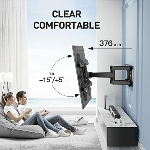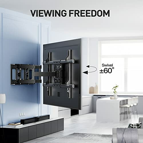 • Optymalny Kąt Widzenia – Ten uchwyt ścienny do telewizora oferuje kąt nachylenia +5° / -15°, kąt obrotu +/- 60° (maksymalny kąt obrotu zależy od rozmiaru telewizora) i regulację poziomu +/- 3° dla maksymalnej elastyczności widzenia i personalizacji swych wyjątkowych wrażeń z oglądania.