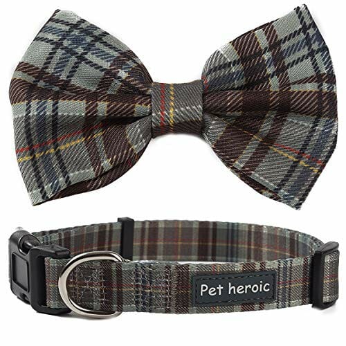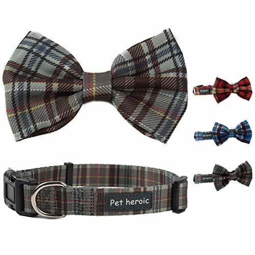 Pet Heroic Obroża dla psa kota z kratką muszką, regulowana krata zwierzę domowe psy koty wygodne trwałe obroże z muszką dla małych średnich dużych psów kotów w 3 stylach