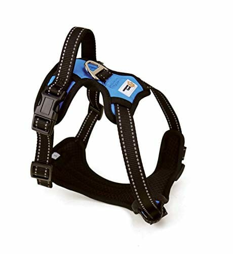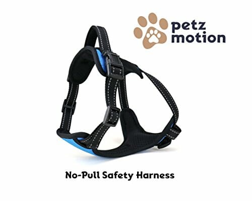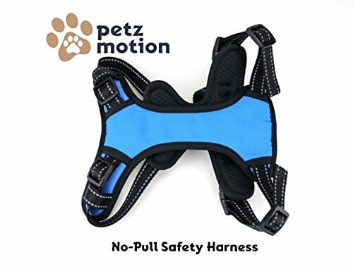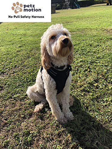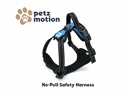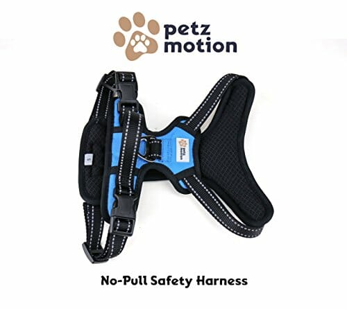 Petzmotion No-Pull uprząż bezpieczeństwa dla psa, regulowana, odblaskowa, outdoorowa kamizelka dla zwierząt domowych z uchwytem, trwały, oddychający materiał (M – M, niebieski)