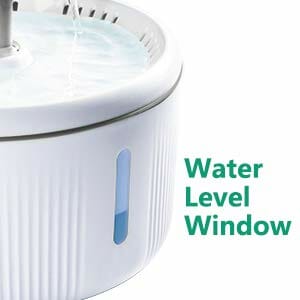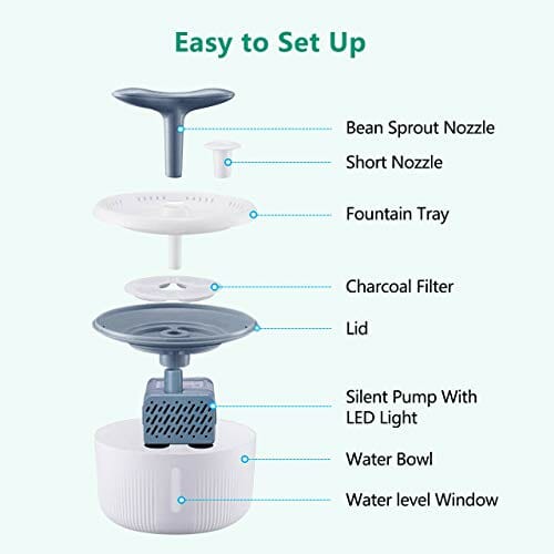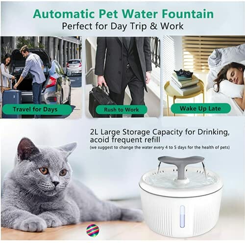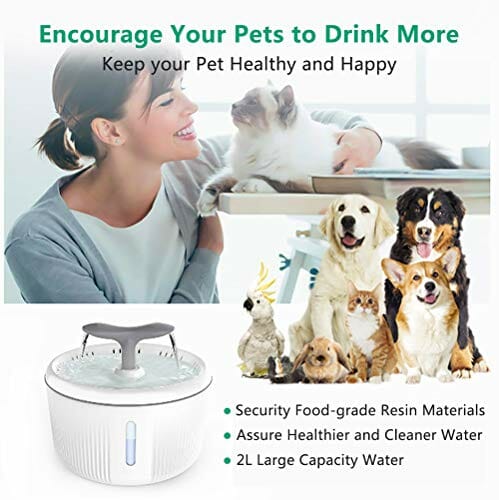 • Z okienkiem na wodę LED przezroczyste okno poziomu wody z diodami LED przypomina o napełnianiu wody w ciągu dnia lub w nocy. Monitorowanie poziomu wody. W zestawie z 2 zabawkami jako prezent dla zwierząt domowych.