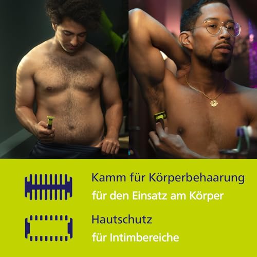 ✅ Trymer i golarka: Trymer i golarka do ciała: przycinanie i golenie w dowolnym kierunku dzięki zatrzaskowemu grzebieniowi do ciała (3 mm) i osłonie skóry zapewniającej dodatkową warstwę ochrony wrażliwych miejsc