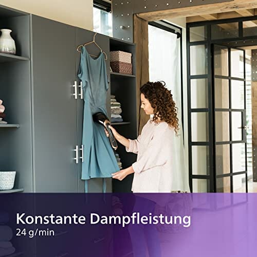 • Łatwe usuwanie zagnieceń: automatyczny ciągły strumień pary do 24 g/min łatwo i szybko usuwa zagniecenia – Prasuj poziomym strumieniem pary trudne miejsca, takie jak mankiety i kołnierze
