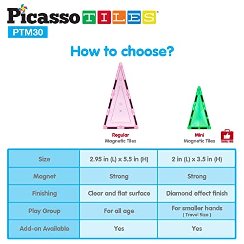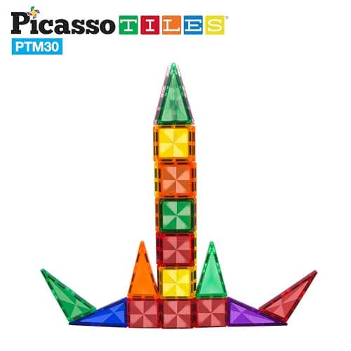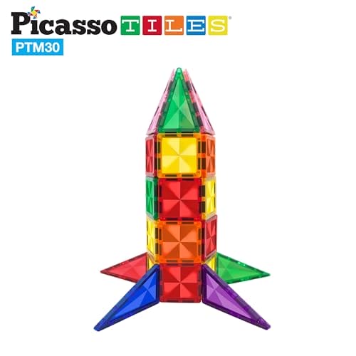 PicassoTiles 30 Piece Magnetic Building Blocks Mini Diamond Series Travel Size On-the-Go Magnet Construction Toy Set STEM Learning Kit Education Plays