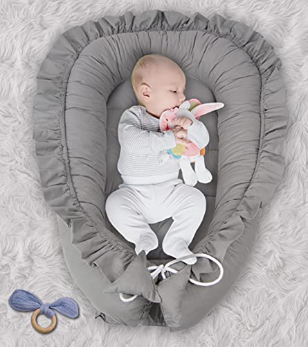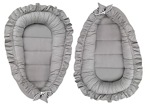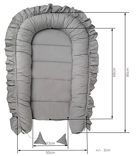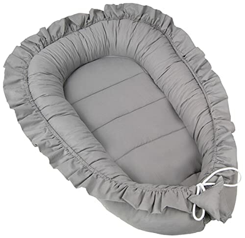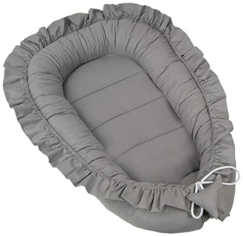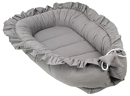 PIMKO Gniazdko niemowlęce z falbankami, kokon dla niemowląt i noworodków, 100% bawełna, nadaje się do domu, 55 x 90 cm, antracytowe