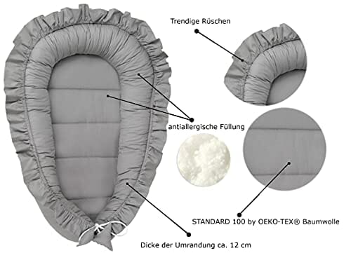 • Wszechstronny dodatek dla Twojego dziecka! Rozmiar gniazda dla niemowląt można elastycznie regulować za pomocą wszytych sznurków. Oddychająca, miękka i ekologiczna bawełna zapewnia wyjątkowy komfort Twojego dziecka. Produkt jest poręczny i łatwy do przenoszenia. Jeśli jedziesz na urlop, odwiedzasz rodzinę lub dziadków – po prostu zabierz go ze sobą.