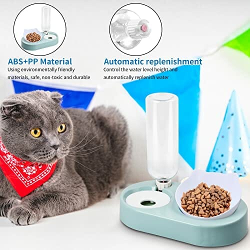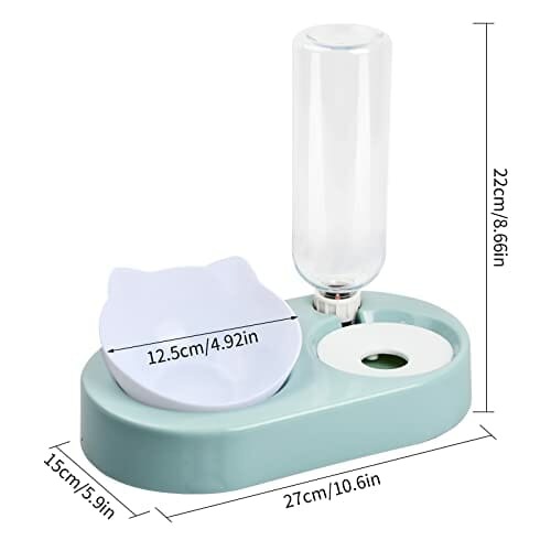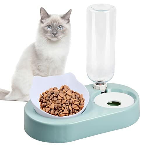 Pinsheng Miska dla kota, miska dla kota z dozownikiem wody, zestaw misek dla kota, z regulowanym nachyleniem 0-15°, automatyczna butelka na wodę, zdejmowana miska na karmę dla kotów i psów (zielona)
