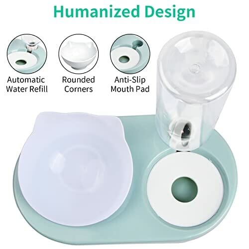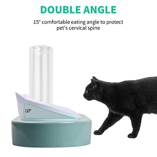 • Konstrukcja pochylenia o 15° – miska na jedzenie jest wyposażona w misę na karmę dla kotów pochyłą o 0-15°, pod odpowiednim kątem, aby chronić szyjny odcinek Twojego zwierzaka i sprawić, że posiłek będzie przyjemniejszy dla zwierząt domowych z zapaleniem stawów.