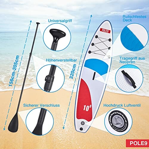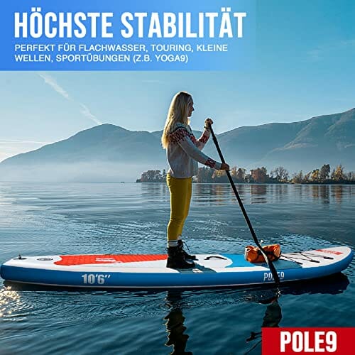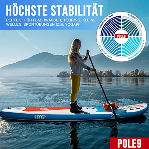 POLE9 Stand Up deska do pływania na stojąco, z akcesoriami do paddleboardingu, 320 x 80 x 15 cm, ultralekka nadmuchiwana deska, wodoszczelny plecak, podwójna pompka, aluminiowe wiosło