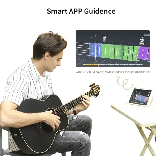 - Intelligente Anleitung: kann mit APP (PopuMusic) mit Bluetooth-Verbindung zum freien Lernen und Üben verbunden werden. Poputar macht Ihren Übungs- und Lernprozess mit 96 intelligenten LED-Leuchten auf dem Griffbrett in jeder Phase angenehm.