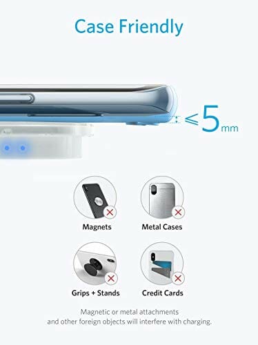 • CERTYFIKOWANA BEZ FIL QI Spełnia standard ładowania QI, ta bezprzewodowa baza ładowania działa z dużą liczbą smartfonów z technologią QI. Praktyczny, może być również używany z urządzeniami nieposiadającymi funkcji QI, ale jest kompatybilny z etui lub obrusami indukcyjnymi.