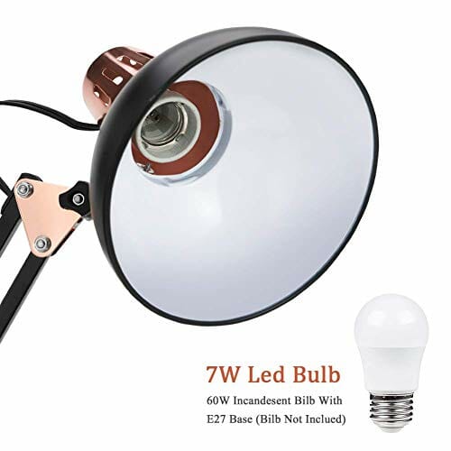 • 4. 【Przyjazny dla użytkownika】Włącznik/wyłącznik wygodnie znajduje się na kablu o długości 12 cali dla szybkiego i łatwego użytkowania. Lampa do zadań pasuje do podstawy żarówki E27, należy kupić żarówkę LED 7 W lub żarówkę 60 W, ponieważ żarówka nie jest wliczona w cenę.
