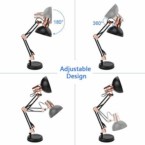 • 1. 【Materiał kwalifikowany】 Dzięki naszemu wykwalifikowanemu materiałowi metalowemu na ramieniu i głowicy lampy oraz zaciskowi zapewnij że nasza lampa architekta jest trwała i wykwintna. Ta biurowa lampa biurkowa z trzema obrotowymi przegubami (na podstawie, połączenie ramienia i głowicy lampy) umożliwia łatwą regulację światła w niemal każdej pozycji.