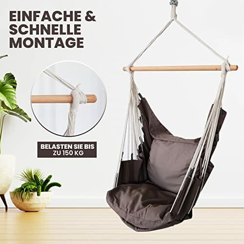 • ✅ Łatwy i szybki montaż: Dzięki kompletnemu zestawowi do montażu na suficie i łatwej do zrozumienia instrukcji montażu krzesło wiszące jest gotowe do użycia w mgnieniu oka. Zawarte w zakresie dostawy mocowanie posiada atest TÜV Süd do 150 kg