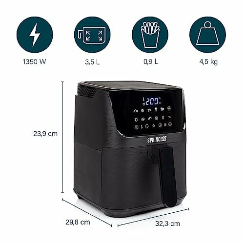 Princess Heißluftfritteuse mit 3,5 L – 70% weniger Energieverbrauch – 11 Programme – Inklusive Rezeptheft mit 30 Rezepten in deutsch – Airfryer – 182031