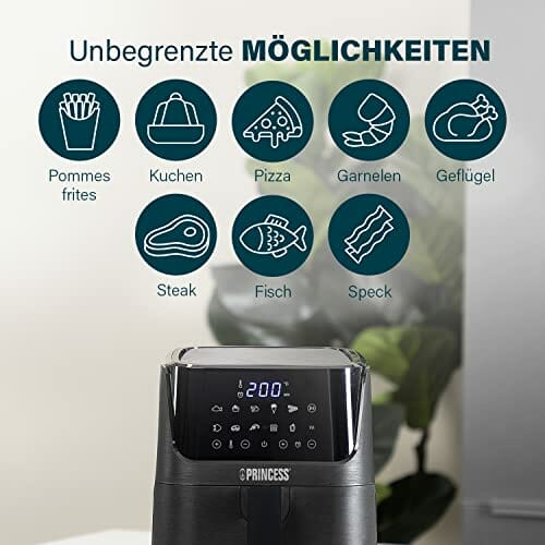 - Mit der Princess Heißluftfritteuse 182031 können Sie gesünder kochen, ohne Kompromisse beim Geschmack eingehen zu müssen. Dank der Heißluftkonvektion können Sie Pommes frites und alle Arten von Gerichten mit bis zu 85 % weniger Öl zubereiten.