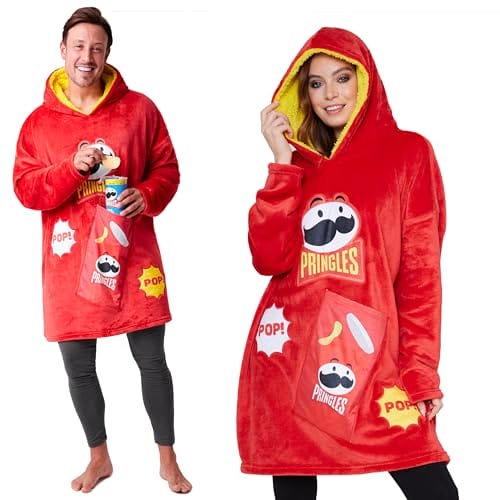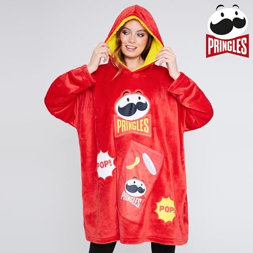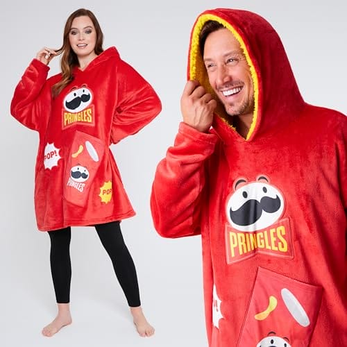 Pringles Hoodie Blanket dla dorosłych i nastolatków – ciepły, oversize koc z kapturem w kolorze czerwonym