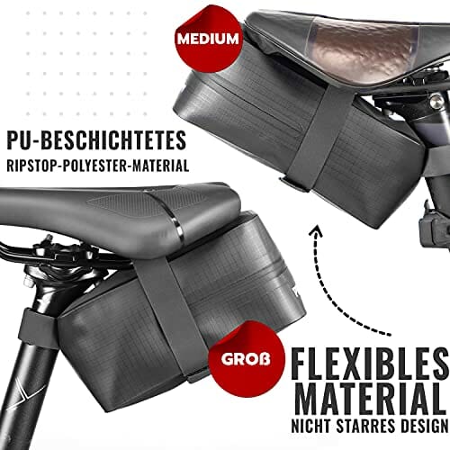 PRO BIKE TOOL Torba na siodełko rowerowe – torba rowerowa z paskiem pod siedzeniem do rowerów szosowych lub górskich – duży rozmiar