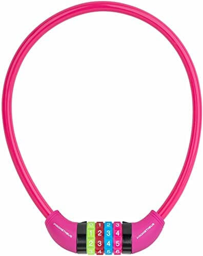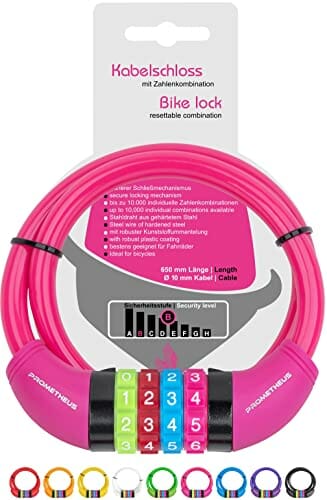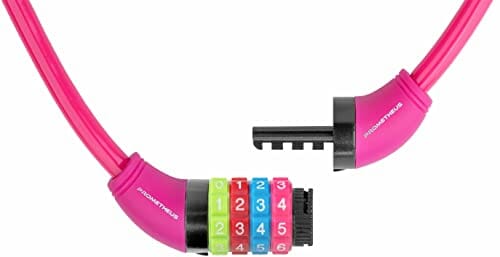 PROMETHEUS zamek rowerowy dla dzieci, zamek kablowy do roweru dziecięcego, kod numeryczny 650 mm, kolor różowy