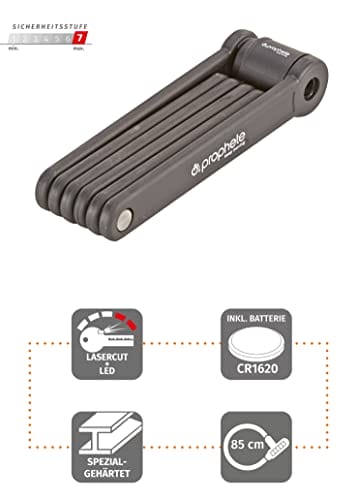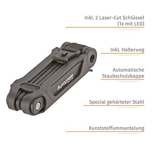 Prophete Zapięcie składane | zapięcie rowerowe | długość: 85 cm | specjalnie hartowana stal | 2 klucze | osłona z tworzywa sztucznego | czarna | w zestawie uchwyt
