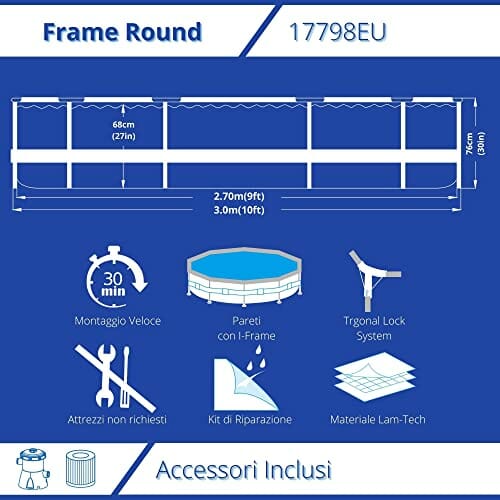Q Rurowy wymienny basen z okrągłym filtrem wkładowym Ø 300 X 76 CM. FILTRACJA 1200 L/H