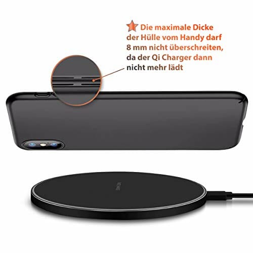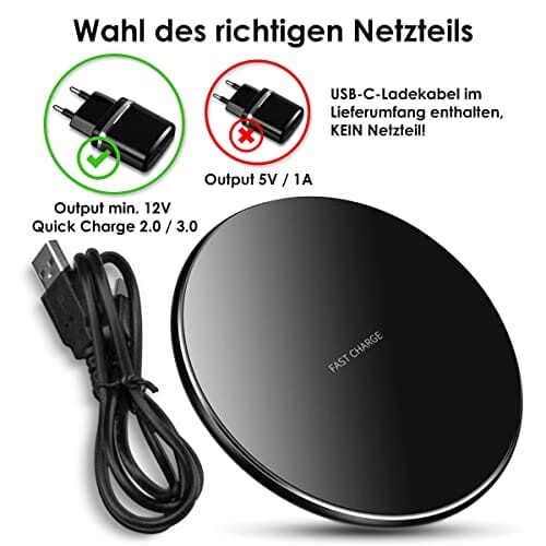 • Szczegóły: wejście: 12 V – 2 A / 9 V – 2 A / 5 V – 2 A, wyjście: 15 W / 10 W / 7,5 W / 5 W, zasięg transmisji: