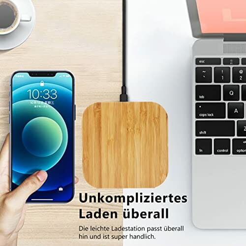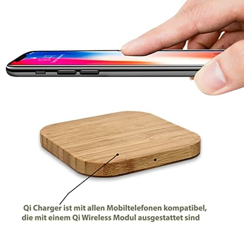 QI bezprzewodowa szybka ładowarka 15 W, kompatybilna z Nothing Phone 1, bezprzewodowa stacja ładująca z bambusa, indukcyjne ładowanie z prawdziwego drewna, model: kwadratowa