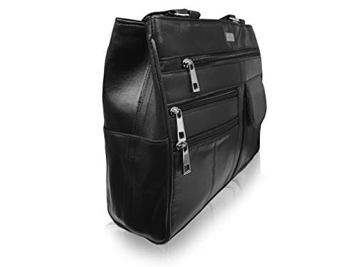 Einzelheiten: Damen Handtasche aus echtem Leder mit 8 Taschen und Fächern.