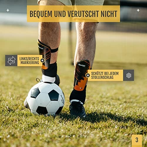 • ⚽ Ochrona kostek – ochraniacze piłkarskie Racetex są wyposażone w wbudowaną ochronę kostek, która zapewnia doskonałą ochronę podczas trudnych i walczących walk na boisku.