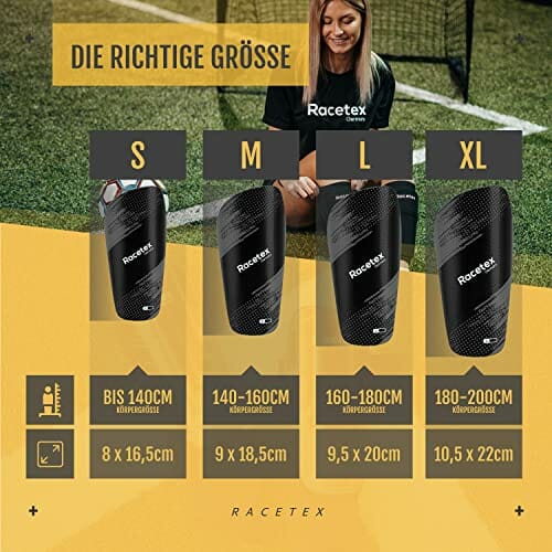 Racetex Ochraniacze na piszczele dla dzieci [antypoślizgowe wnętrze] – ochraniacze piszczeli dla mężczyzn i kobiet – ochraniacze piszczeli z podwójną kieszenią dla optymalnego meczu piłki nożnej