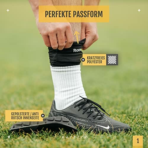 • ⚽ Innowacyjna podwójna kieszeń firmy Racetex zapobiega wypadaniu ochraniaczy piłkarskich podczas gry i zapewnia, że ochraniacze piszczeli dla dzieci zawsze pozostają na Twojej nodze.
