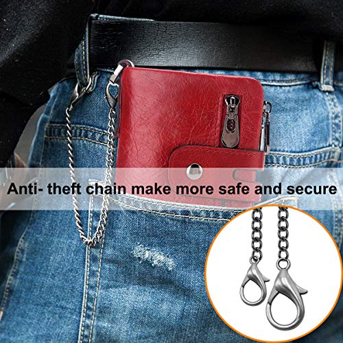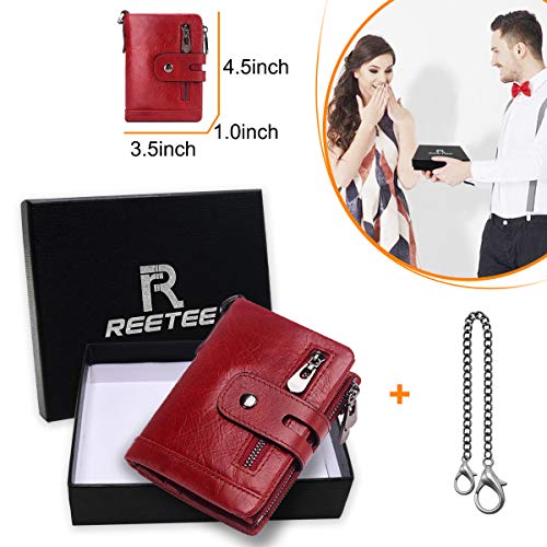 Portfel damski skórzany portfel damski blokujący RFID portfel damski mały zamek błyskawiczny 16 miejsc na karty, skórzany portfel z łańcuszkiem, Czerw