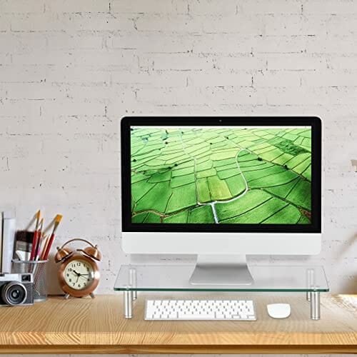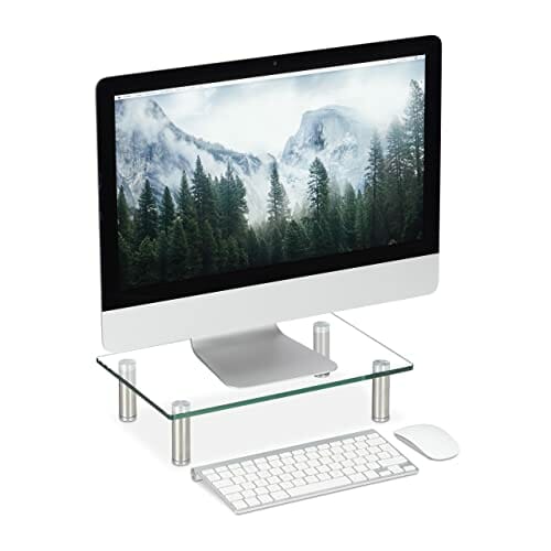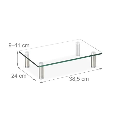 Relaxdays Szklany stojak na monitor, stolik pod telewizor, stojak na notebooka z regulacją wysokości 9 – 11 cm, szer. x gł.: 38,5 x 24 cm, przezroczysty, mały