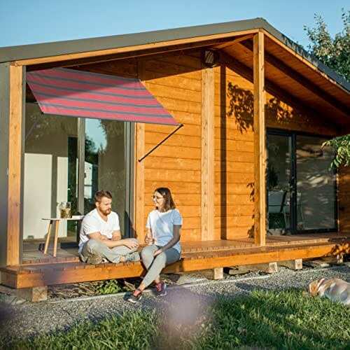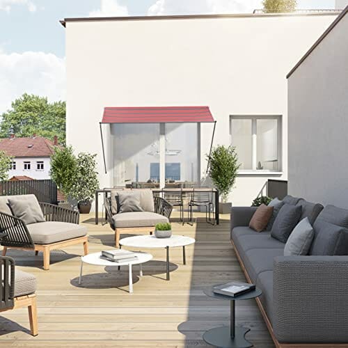 - Material: Wetterfeste Sonnenmarkise aus PU-beschichtetem Polyester – Wasserabweisend u. UV-beständig