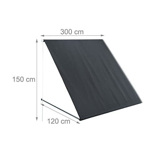 Relaxdays Fallarmmarkise, HxB: 120×300 cm, einziehbar, UV-Schutz, Polyester, Schattenspender Fenster & Balkon, anthrazit