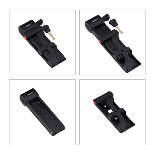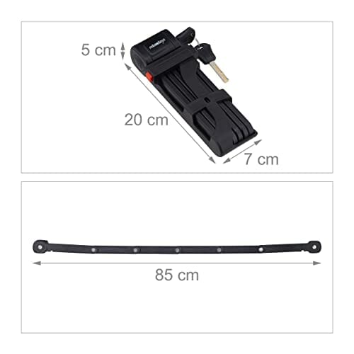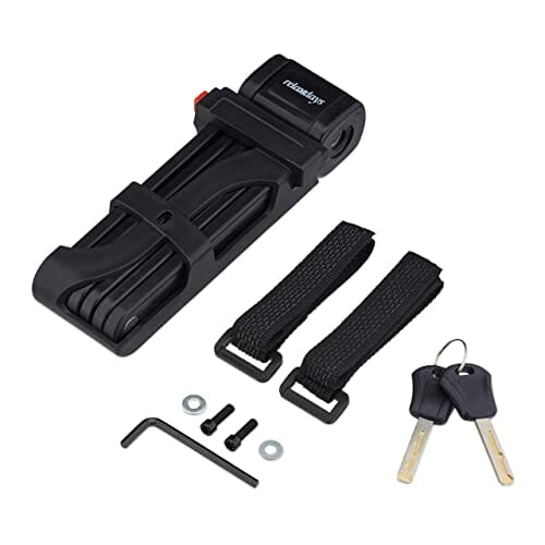 Relaxdays Składany zamek rowerowy, stalowy, bezpieczny zamek rowerowy z uchwytem, 2 klucze, 85 cm, składany zamek, czarny