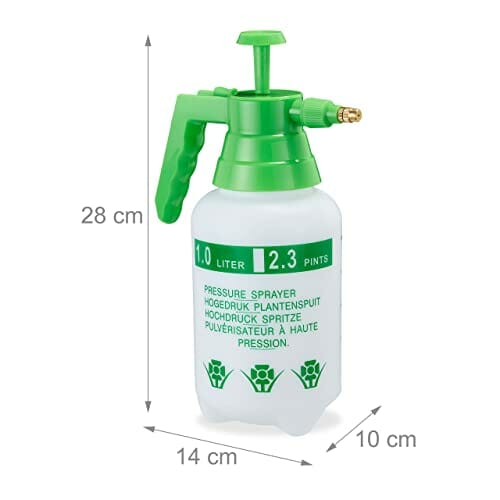 Relaxdays Pompa ciśnieniowa opryskiwacz ogrodowy, regulowana mosiężna dysza, konewka, kontrola szkodników, pojemność 1 l, zielony