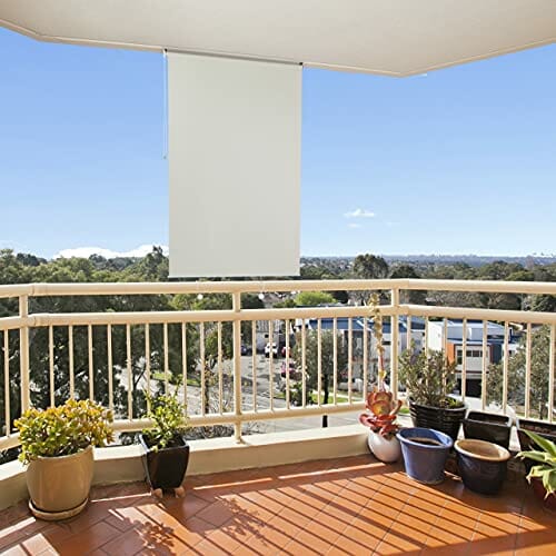 • Für außen: Moderne Senkrechtmarkise für Balkon, Terrasse und Garten – Außenrollo in beigem Design