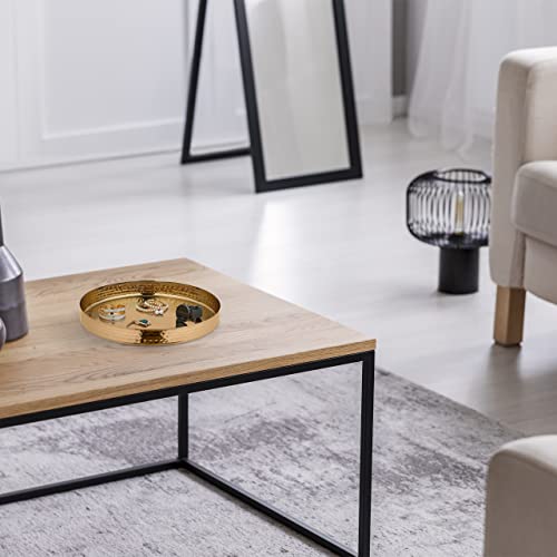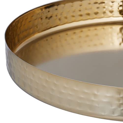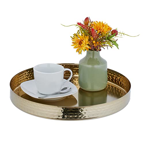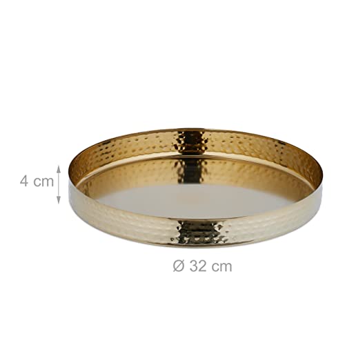 • Wygląd: okrągła taca dekoracyjna w kolorze złotym – młotkowana stal nierdzewna zapewnia elegancki wygląd – wys. x śr.: ok. 4 x 32 cm