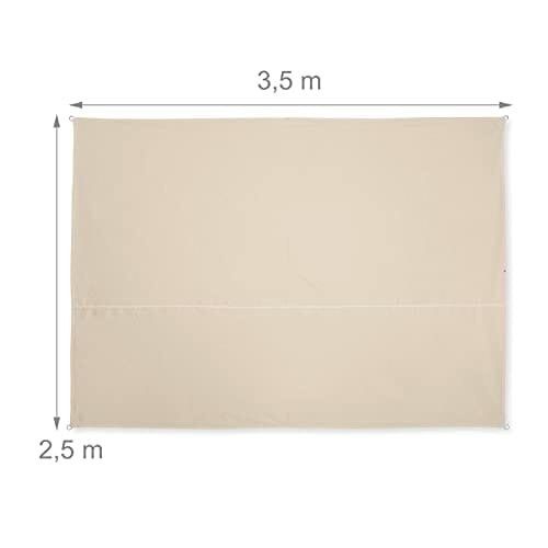 Relaxdays Sonnensegel rechteckig, 2,5 x 3,5 m, wasserabweisend, UV-beständig, mit Spannseilen, Terrasse, Balkon, beige