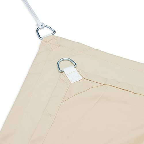 - Befestigung: Das große Schattensegel wird mit 4 Spannseilen durch Haken und Ösen im Stoff befestigt