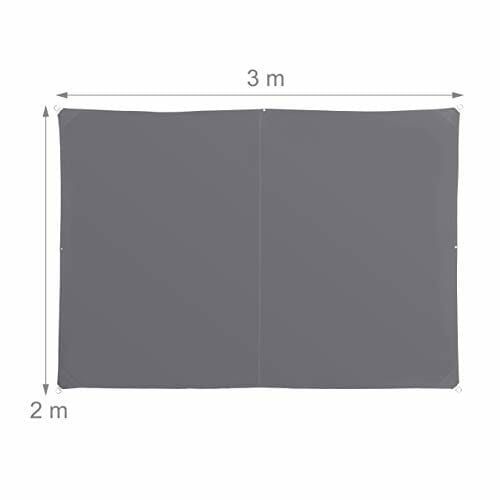 - Nazwa modelu: Relaxdays Sonnensegel rechteckig, wasserabweisend, UV-beständig, mit Spannseilen, Terrasse, Balkon, B x T: 2 x 3 m, grau Relaxdays Sonnensegel rechtec