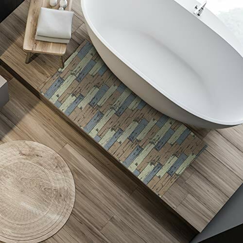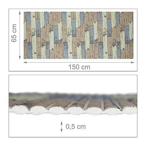 Relaxdays Mata z miękkiej pianki, możliwość przycięcia, łazienka, sauna, basen, mata antypoślizgowa, wygląd drewna, szer. x gł. 65 x 150 cm, brązowo-szara, drewno/zielona, 150 cm