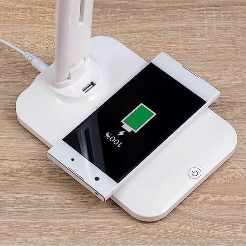Retoo Lampa biurkowa oferuje również ładowanie bezprzewodowe, co jest niezwykle wygodne i praktyczne. Nie musisz już szukać kabli i gniazdek, aby naładować swoje urządzenia mobilne. Wystarczy położyć je na podstawce lampy i cieszyć się bezprzewodowym ładowaniem.