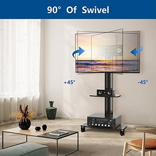 • Wygodny ruch – wytrzymałe kółka blokujące na przednich kołach bocznych, dzięki czemu stojak podłogowy telewizora będzie stacjonarny lub mobilny, gdy jest to pożądane. Jest to bardzo idealne, aby przenieść się do każdego pomieszczenia w domu lub biurze.